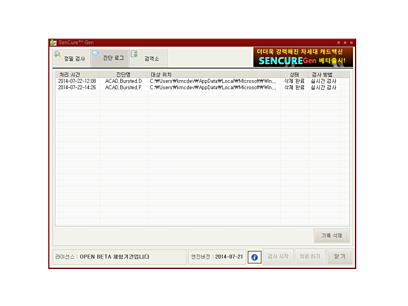 토큰방식으로 정확하게 캐드 악성코드를 진단하고 치료하며, 트레이에 상주하는 실시간 감시기는 캐드 시스템에 감염되기전에 차단합니다.