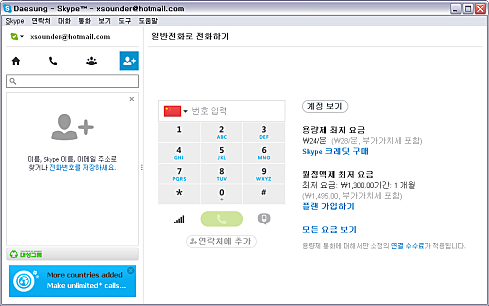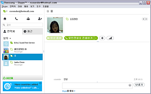 Skype 회원 간에 무료 음성 통화 및 영상 통화가 가능합니다.