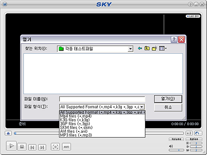 Sky, LG 핸드폰에서 구동되는 포맷의 동영상파일을 AVI로 변환하거나 재생할 수 있습니다.