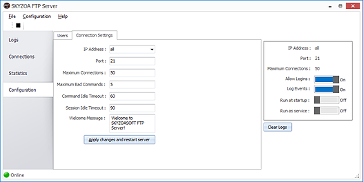 상세정보 프로토콜 FTP(File Transfer Protocol) 최대접속수 무제한 연결모드 Active/Passive 모드 서버모드 어플리케이션모드 윈도우즈서비스모드(라이센스 구매고객에 한함)