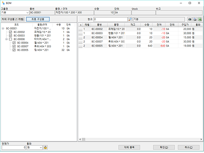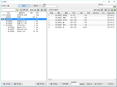 * 그룹 BOM, 다중레벨 BOM, 트리구조 BOM을 지원합니다.