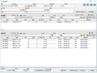 * BOM, 작업지시, 생산 등을 지원합니다.