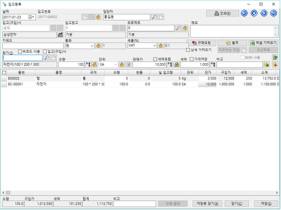* 발주요청, 발주, 입고, 견적, 수주(주문), 출고 등의 관리기능을 지원합니다.