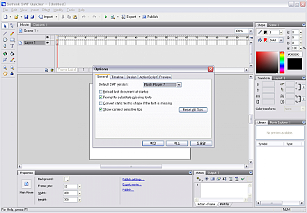 상세정보 플래쉬 무비 편집 SWF 플래쉬 무비를 편집 및 제작할 수 있는 기능이 있습니다. 사운드와 동영상, 마우스 액션이 가능합니다. 100여 가지의 애니메이션 효과, 모션 효과 등이 지원됩니다.