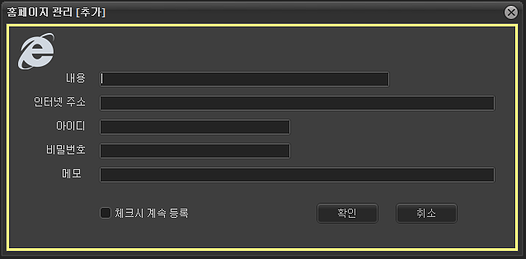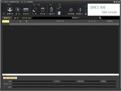 홈페이지, 통장, 카드 기타등 비밀번호 분실을 대비하여 만든 프로그램입니다. 인터넷 서버가 아닌 자체 하드 or 이동형디스크에 저장하므로 정보유출 걱정이 없습니다