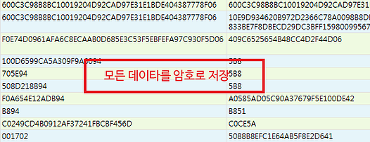 * 모든 데이터를 암호로 변경하여 저장합니다.