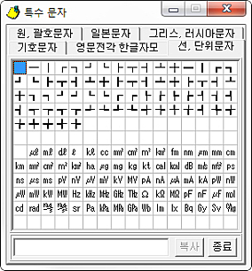 상세정보 지원하는 특수문자 원/괄호문자, 일본문자, 그리스/러시아 문자, 기호문자, 영문전각 한글자모, 선/단위문자를 제공합니다. 다른 프로그램과 호환 한글이나 Word 프로그램에서 사용이 가능합니다.