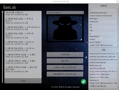 * 프로그램은 백그라운드에서 동작하여 상태표시줄, 작업관리자의 실행중인 프로그램목록에도 나타나지 않습니다. 이점은 아무런 보안 프로그램이 없는 듯한 환경을 보여지게 만들어 USB의 정보를 노리는 스파이가 아무런 의심 없이 접근하도록 하는 미끼가 될 수 있습니다.