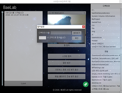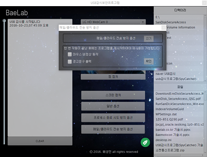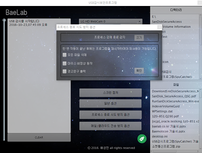 * 스파이가 프로그램의 프로세스를 종료하려 시도 했을 때, 대처 할 수 있는 추가적인 옵션들이 존재합니다.(USB내 파일 모두 삭제, 패스워드를 입력할 때 까지 마우스비정상동작, 경고문구출력)