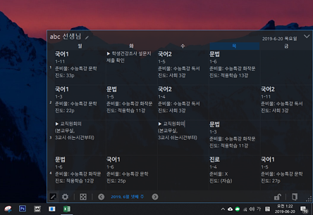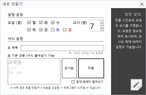 * 평소에 접할 수 있었던 주간 시간표의 형태를 그대로 반영하였기 때문에 처음 사용하는 사람도 실제 시간표를 사용하는 것처럼 익숙하게 활용이 가능합니다.