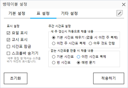 * 쌤테이블은 사용자가 설정한 '기본 시간표'를 기본값으로 지정하고 매 주마다 시간표를 생성하여 지난 주, 이번 주, 다음 주 시간표를 관리하고 조회할 수 있도록 하여 일정을 체계적으로 관리할 수 있도록 도와줍니다.