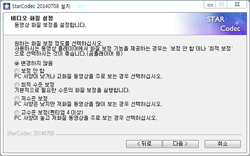 * 일반, 최소, 인코딩, 저 사양 PC, 전체, 사용자 정의 설치 등 다양한 설치 설정이 가능 합니다.