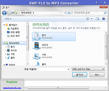 상세정보 비디오 파일 변환 SWF(Adobe Flash 무비파일) 및 FLV(Flash Video)를 MP3 / WAV형식으로 변환할 수 있습니다. 오디오 파일 통합 모든 사운드 요소를 추출하고 독립적인 오디오 파일로 저장할 수 있으며, 추출한 여러 개의 MP3를 하나의 파일로 병합할 수 있습니다. [간단한 인터페이스] 심플한 디자인의 인터페이스로 사용자가 손쉽게 파일들을 일괄적으로 변환할 수 있습니다. [그 외의 기능] 인터넷 캐시 폴더와 비슷한 종류의 폴더도 지원합니다. Drag & Drop 기능지원으로 편리하게 사용할 수 있습니다.