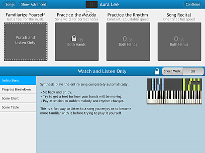 사용자가 연습을 원하는 시트만을 표시합니다. 그 외의 나머지는 자동으로 재생됩니다.
