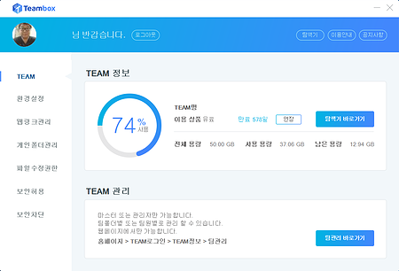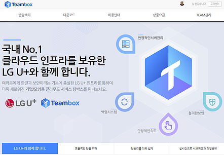 팀박스 그룹 클라우드 서비스는 국내외 웹하드 서비스를 하는 LG U+ 인프라와 결합한 서비스로 개인부터 기업용까지 다양한 환경에 최적화된 업무용 그룹 스토리지 서비스입니다