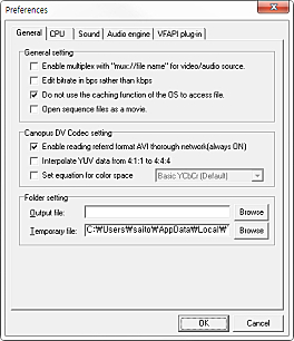상세정보 변환 기능 AVI 동영상 파일을 MPEG형식으로 변환합니다. 설정 변경 MPEG 동영상을 픽셀, 비율, 프레임 변경이 가능합니다. 내장 플러그인 VFAPI이 프로그램에 내장되어 있습니다. 언어 일본어, 독일어, 불어, 중국어, 영어를 지원합니다. 디코더 지원안함 MPEG-2 디코더는 제공하지 않습니다.