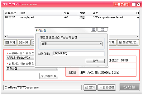 세부설정이 가능하여 사용자가 인코딩 환경을 설정할 수 있습니다.