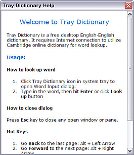인터넷만 연결되어있으면 빠르게 영어-영어 사전을 쓸 수 있도록 만들어졌으며, 트레이에 아이콘으로 상주하는 사전 프로그램입니다.