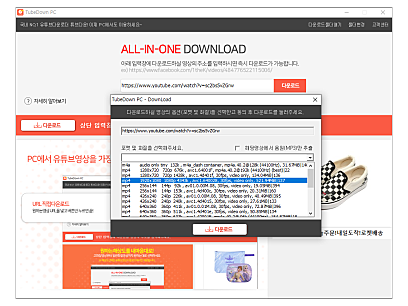 유튜브(youtube).트위터,페이스북 등 SNS ,동영상 사이트에서 고화질영상다운,음원추출(MP3,M4a)등을 쉽게 할 수 있는 튜브다운PC버젼