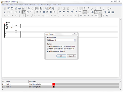 TuxGuitar는 작곡한 곡을 오선지에 기재하면 TAB악보로 변환해주고, 기타 연주로 들어보고 수정할 수 있는 작곡 프로그램입니다.