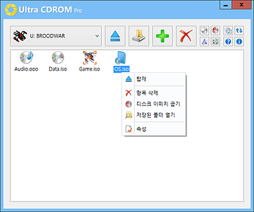 * 다양한 디스크 이미지 포맷을 지원합니다. iso, ooo, cue, ccd, nrg, mds, 스마트 검출