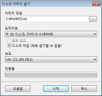 * ISO 파일을 공CD,DVD,BD에 굽기합니다.