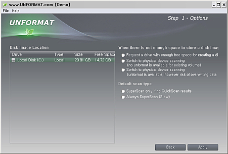 포맷으로 삭제된 데이터를 디스크를 통해 복구해주는 프로그램입니다.