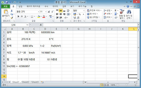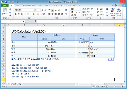 * 변환된 엑셀에서 단위환산기능을 사용할 수 있습니다.