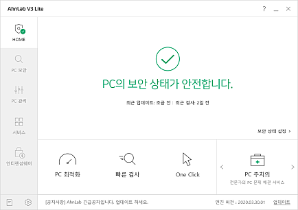 V3 Lite는 악성코드 진단 및 치료는 물론, 의심 프로그램 실행 차단/웹 보안 등 강력한 PC보안을 제공하는 AhnLab의 대표 무료백신입니다.