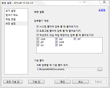 압축 해제 전 악성파일들의 시스템 폴더 접근 차단하고, V3 제품군과 함께 사용시 더욱 뛰어난 보안성 확보할 수 있습니다.