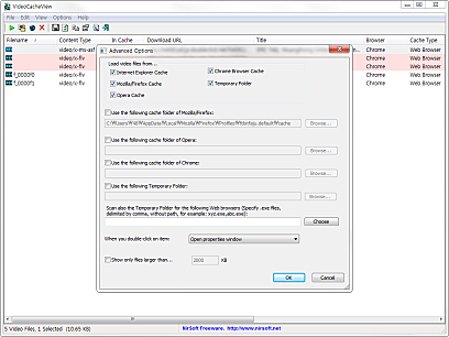 별도의 재생기를 통해서도 캐쉬 파일을 재생 및 저장할 수 있으며, FLV를 지원합니다.