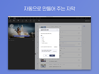 * 듣고 받아적는 자막은 이제 그만. 단 한번의 클릭이면 자막이 만들어집니다. 인공지능과 함께하는 빠르고 편한 자막 생성. 자막을 사용해 영상의 전달력을 높여보세요.