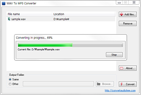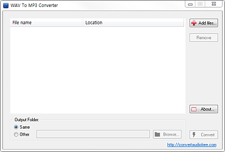 상세정보 파일 변환 WAV 파일을 MP3 파일로 변환시켜줍니다. 사용자가 좋아하는 CD의 음악을 웹사이트에 업로드하고, 공유할 수 있습니다. 편리한 인터페이스 사용자 친화적인 인터페이스로 간편하게 사용할 수 있습니다. 드래그 앤 드롭 기능이 지원됩니다.