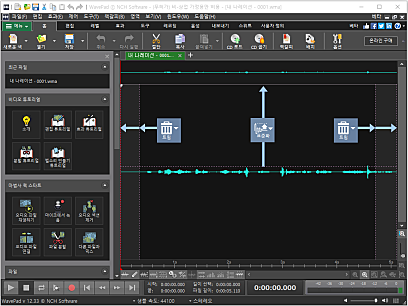 * 사운드 편집 기능은 잘라내기, 복사, 붙여넣기, 삭제, 삽입, 공백추가, 자동 트림하기 등 다양한 파일 편집 기능.