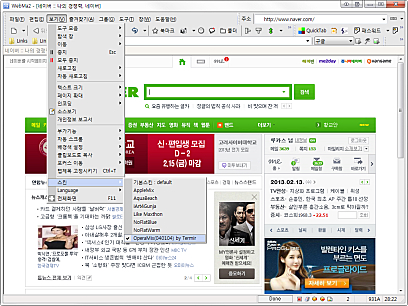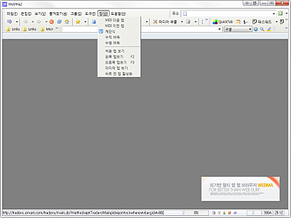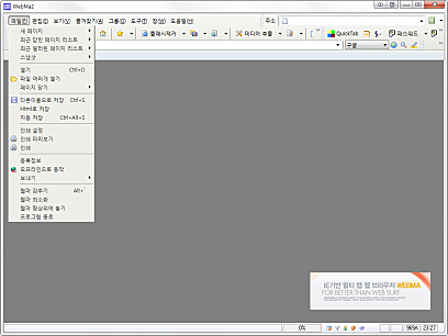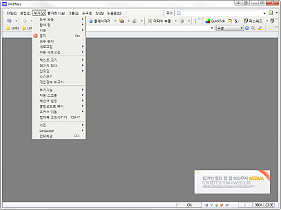 스킨폴더는 웹마실행화일이 있는 폴더의 skins폴더 밑에 두면 됩니다. 웹마의 경우는 툴바이미지를 순서를 관여하지 않습니다. 원하는 툴바이미지와 명령을 짝지을 수 있고, 메뉴바의 이미지도 사용자 원하는 데로 추가 삭제가 가능하기 때문에 이미지의 배경이 RGB(255,0,255)이고 버튼 하나의 사이즈만 스킨폴더의 skin.ini에서 제대로 지정되어 있다면 어떤 것이든 쓸수가 있습니다.