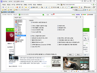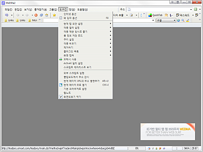 Shift + 오른쪽 Click : 이미지 위에서 이 키를 누르게 되면 해당 이미지를 빠른 이미지 저장폴더(옵션-일반2)에 저장합니다. 이미지나 플래쉬를 바로 저장할 수 있습니다. 저장에 성공하면 상태바에 저장된 파일명이 2초간 표시됩니다.
