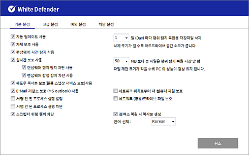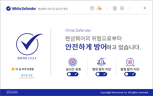 [화이트 디펜더] 를 항상 최신 버전으로 유지하여 신종 랜섬웨어에 대한 빠른 대응을 지원합니다.