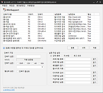 윈서포트는 단축키로 여러가지 동작 (웹사이트 이동, 프로그램 실행 등..) 을 빠르게 실행 시킬수 있는 단축키 프로그램입니다.