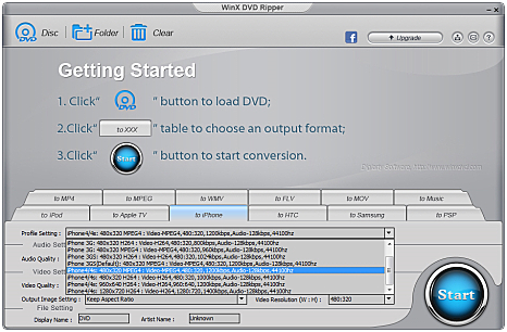 DVD파일을 AVI, MPEG, MP4, WMV, MOV, FLV, iPhone 등에 최적화된 영상파일을 만듭니다.