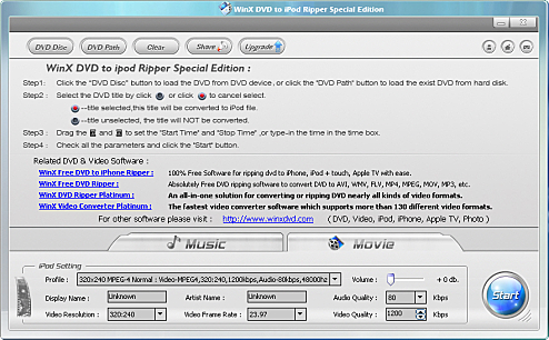 WinX Free DVD to iPod Ripper는 DVD를 iPod에 최적화된 포맷으로 변환해주는 프로그램입니다.