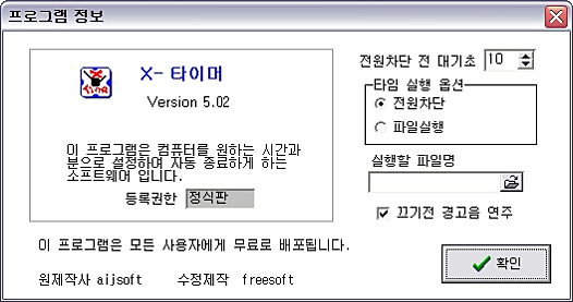 PC의 전원을 사용자가 설정한 시간에 자동으로 종료하고 프로그램을 자동으로 실행할 수 있는 프로그램입니다.