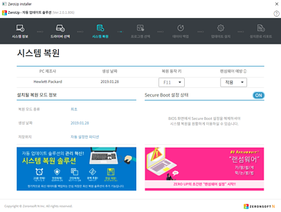 * 20분만에 사용자가 지정한 복원 지점으로 시스템 초기화 및 윈도우 복원이 가능합니다.
